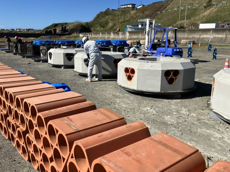 タコの入礁部分には、産卵礁として最適な当社の「単体セラミック礁」を使用しています。